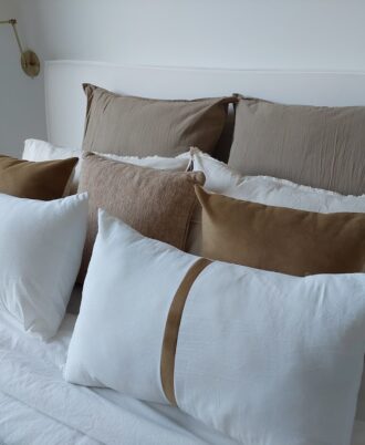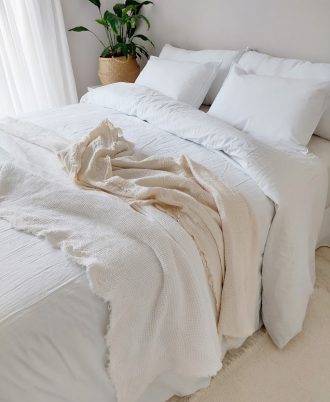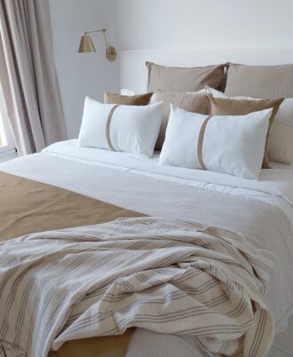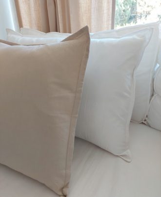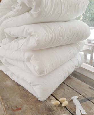 Las Fundas de Edredón son ideales para usarlas solas en verano y en invierno agregarle algún tipo de abrigo por dentro. Son confeccionadas de un lado Tusor Off White y la otra cara color a elección. Cuenta con un cerramiento con botones.