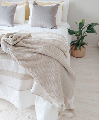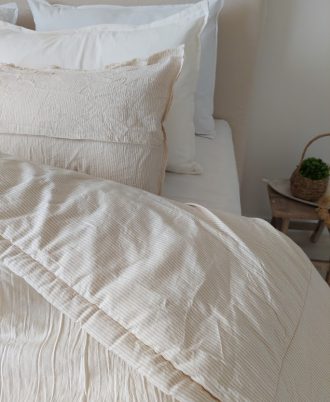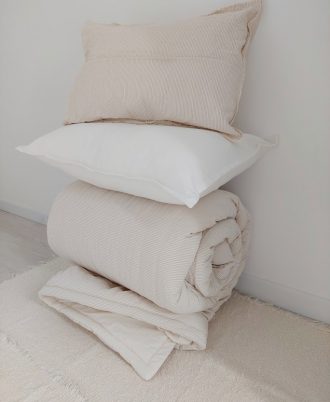 Las Fundas de Edredón son ideales para usarlas solas en verano y en invierno agregarle algún tipo de abrigo por dentro. Son confeccionadas de un lado Tusor Off White y la otra cara color a elección. Cuenta con un cerramiento con botones.